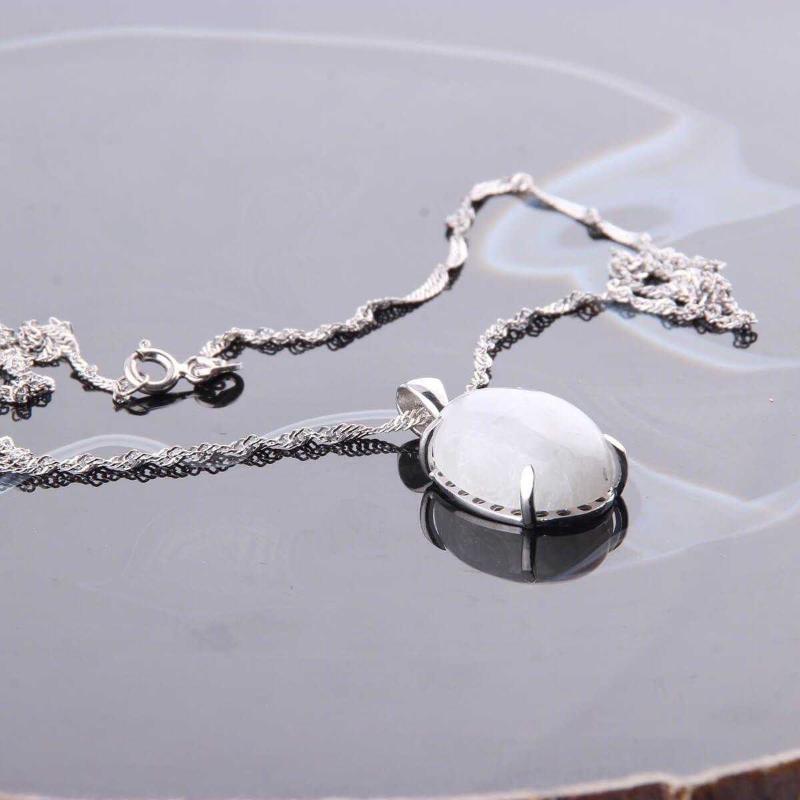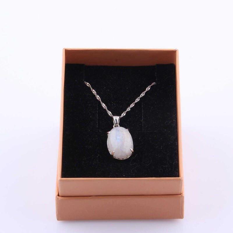 Ay Taşı Doğal Taş Gümüş Çerçeveli ve Zincirli Kolye - 2 x 1,5 cm M347 Ay taşının faydaları: Bayanların özel halleri için önemli bir taştır. Özel hallerdeki duygusal dalgalanmalarda dengeleyici görevi görür. Tokluk hissi verir. Yaşama sevinci verir.