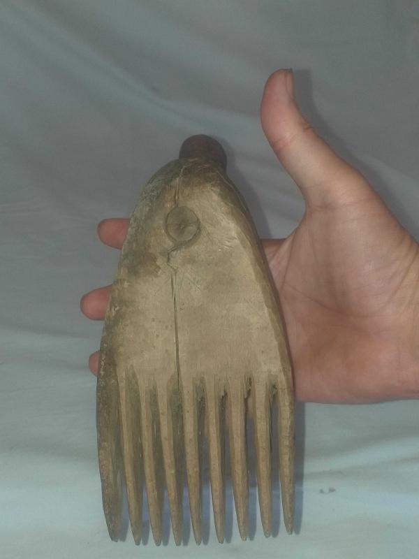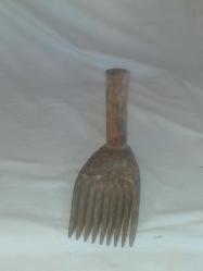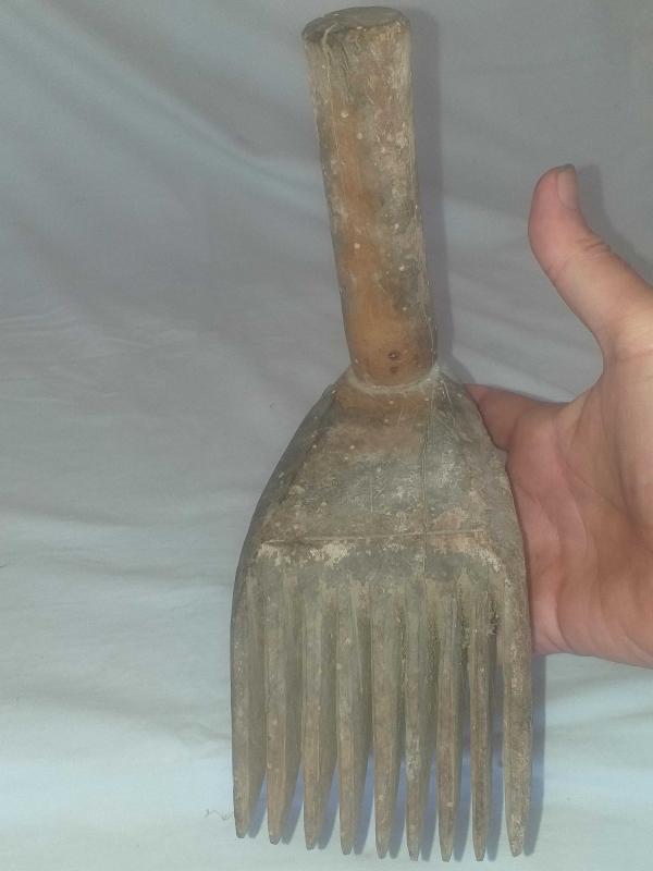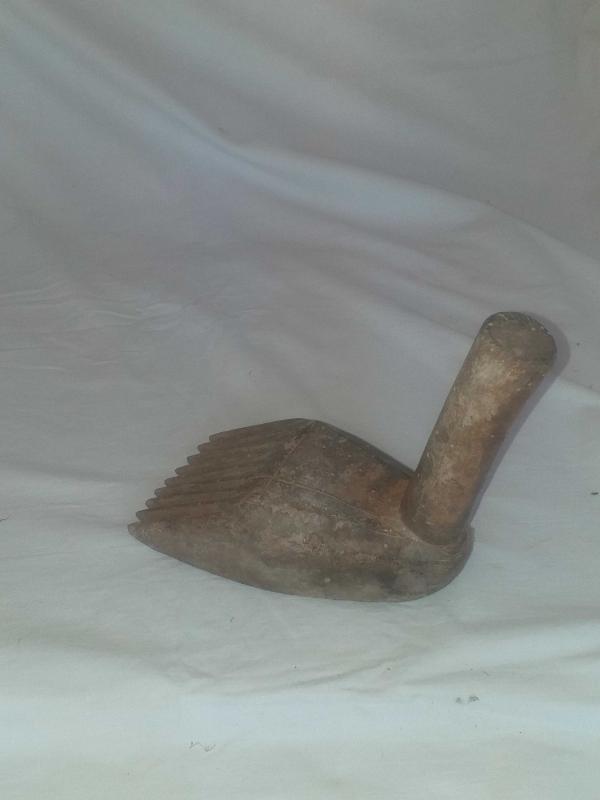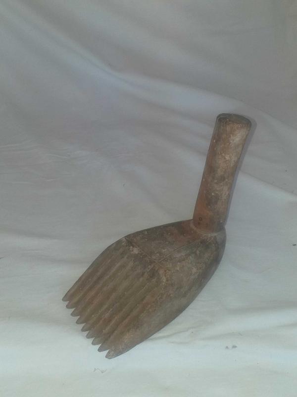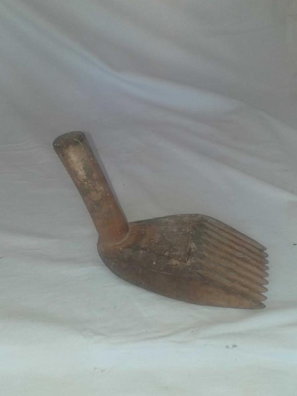 Dokuma işleri yapılırken ürün örgüsünü sıkılaştırmak için vurarak kullanılan ahşap alet... Ayak formunda , güzel patineli ahşap kirkit... Tekstil el aleti , ethnografik sanat , ethnografic art