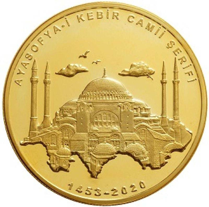 Ayasofya Camiinin ibadete açılışı sebebiyle bastırılan Altın rengi Gümüş Fatih Sultan Mehmet'in Vakfiyesi: İşte, bu benim Ayasofya vakfiyem; dolayısıyla, kim bu Ayasofya'yı camiye dönüştüren vakfiyemi değiştirirse, bir maddesini tebdil ederse, onu iptal veya tadile koşarsa, fasit veya fasık bir teville veya herhangi bir dalavereyle yürürlükten kaldırmaya kastederlerse, aslını değiştirir, füruuna itiraz eder ve bunları yapanlara yol gösterirlerse ve hatta yardım ederlerse ve kanunsuz olarak onda tasarruf yapmaya kalkarlar, camilikten çıkarırlar ve sahte evrak düzenleyerek mütevellilik hakkı gibi şeyler ister yahut onu kendi batıl defterlerine kaydederler veya yalandan kendi hesaplarına deçirirlerse, ifade ediyorum ki huzurunuzda; en büyük haramı işlemiş ve günahları kazanmış olurlar. Bu sebeple, bu vakfiyeyi kim değiştirirse, Allah'ın, Peygamberin, meleklerin, bütün yöneticilerin ve dahi bütün Müslümanların ebediyen laneti onun ve onların üzerine olsun, azapları hafiflemesin, haşr gününde yüzlerine bakılmasın. Kim bunları işittikten sonra hala bu değiştirme işine devam ederse günahı onu değiştirene ait olacaktır. Allah'ın azabı onlaradır. Allah işitendir, bilendir. Fatih Sultan Mehmed Han / Haziran 1453 Metal 925 Ayar Gümüş üzerine Altın Kaplama Ağırlığı 31,10 ± %1 g Kenarı Tırtıllı Baskı Mat Parlak / Proof Maks. Baskı 10.000 adet Nominal Değer 20 Türk Lirası / TRY Tedavül Süresi 01.09.2020 - 31.12.2023