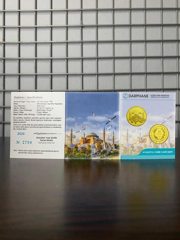 Ayasofya-i Kebir Camii Şerifi - Kutulu Hatıra Para Sertifikalı 2020 (Gümüş Üzerine Altın Kaplama), 18 gün önce satışa sunulmuştur.