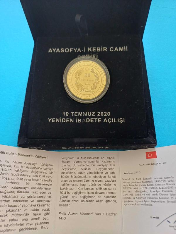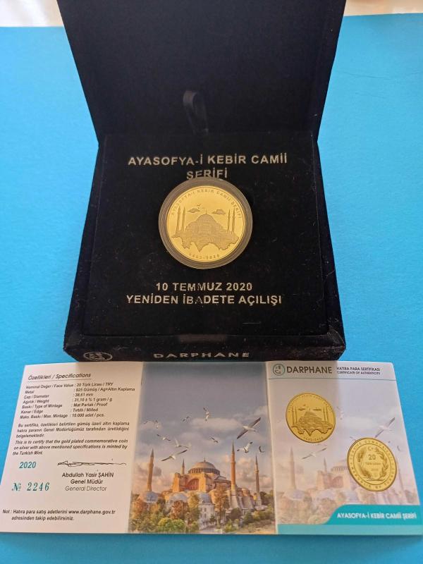Ayasofya-i Kebir Camii Şerifii Hatıra 10 Temmuz 2020 Yeniden İbadete Açılışı Çil Gümüş Üzeri Altın Kaplama Çil Sadece 10.000 adet Basılmıştır