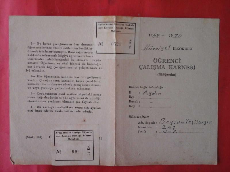 Aydın Hürriyet İlkokulu 1969-1970 Karnesi, en son 3 yıl önce güncellenmiştir.