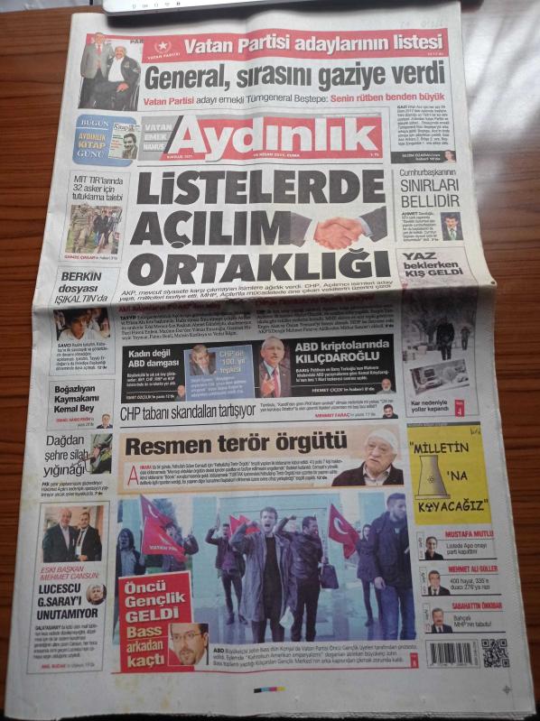 Aydınlık Gazetesi - 10 Nisan 2015 - Milli Şehit Kaymakam Kemal Bey - Mircea Lucescu - İsmail Kartal - Eskrimde Seçim Zamanı - Vatan Partisi Adayı Emekli Tümgeneral Naci Beştepe Sırasını Gaziye Verdi - Berkin Elvan Dosyası - Öncü Gençlik Geldi Amerikan Büyükelçisi John Bass Kaçtı - Fethullah Gülen Cemaati - ABD Kriptolarında Kemal Kılıçdaroğlu - Mit Tır'larında 32 Asker İçin Tutuklama - Ahmet Davutoğlu - Sabahattin Önkibar adlı eser, Kitap > Süreli Yayınlar > Gazeteler kategorisinde İkinci El olarak satıştadır.