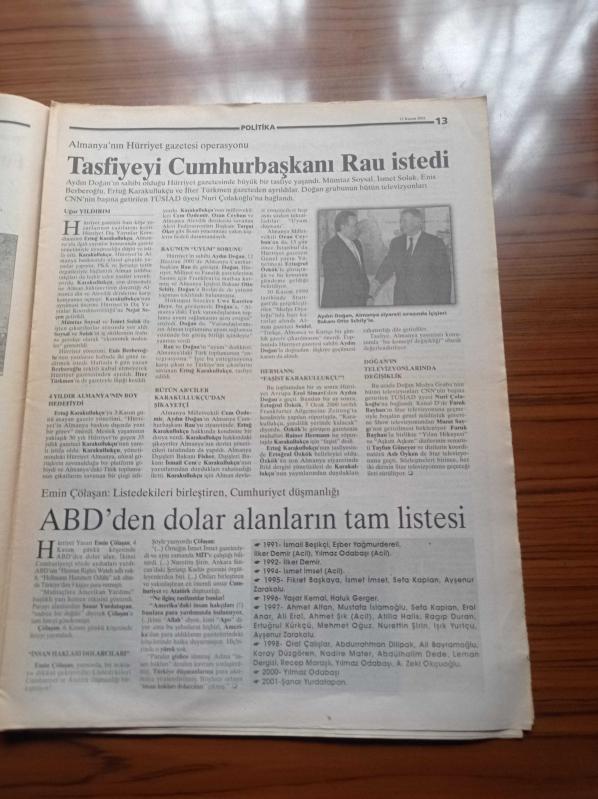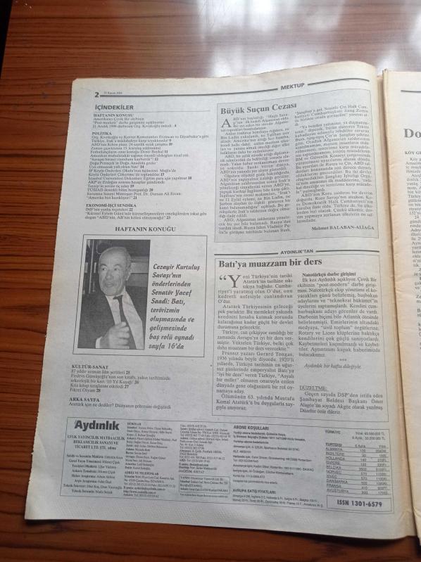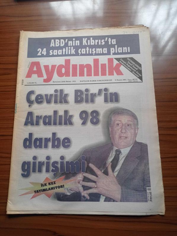 Aydınlık Gazetesi - 11 Kasım 2001 - Kurucusu Şefik Hüsnü - Doğu Perinçek - Çevik Bir'in Aralık 98 Darbe Girişimi - Orgeneral Hüseyin Kıvrıkoğlu - Fethullahçıların Onur Konuğu Deniz Baykal - Fikret Otyam-Recep Tayyip Erdoğan - TÜSİAD Destekli Bilim Bezirganlığı - Savunma Sanayi Müsteşarı Dursun Ali Ercan - Zaman Gazetesinin 15. Kuruluş Yıldönümü adlı eser Türkçe dilindedir.