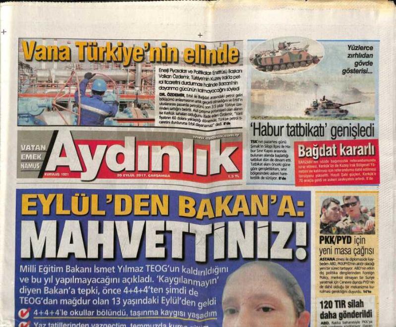 Aydınlık Gazetesi 20 Eylül 2017 - Doğudan Batıya Talebe Rüzgarı - Trump Bmde İranı Hedef Aldı GZ95124, en son 21 gün önce güncellenmiştir.