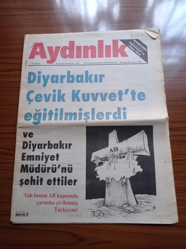 Aydınlık Gazetesi - 28 Ocak 2001 - Kurucusu Şefik Hüsnü - Doğu Perinçek - Diyarbakır Çevik Kuvvet'te Eğitilmişlerdi Ve Diyarbakır Emniyet Müdürü Gaffar Okkan'ı Şehit Ettiler - Hizbullah - Cumhurbaşkanı Rauf Denktaş - ÖDP Dev Yolculardan 4 Kurtuluşçuya 6 Ay İhraç - Cemal Süreya'nın Kaleminden Sakıp Sabancı - Recep Tayyip Erdoğan Ve Mehmet Ağar Ekibi Görüştü- Konsorsiyum Ve Yılmaz Ailesi - Edirne Köylü Kurultayı adlı eser, Kitap > Süreli Yayınlar > Gazeteler kategorisinde İkinci El olarak satıştadır.