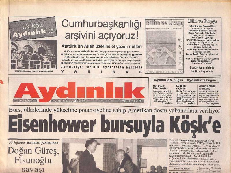Aydınlık Gazetesi 9 Mayıs 1993 - Doğan Güreş, Fisunoğlu Savaşı - ABD'nin Öldürücü Sağlık Sistemi GZ156051, en son 19 gün önce güncellenmiştir.