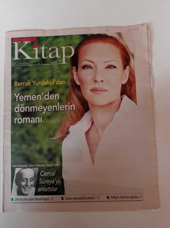 Aydınlık Kitap Gazetesi - 10 Ocak 2014 - Sayı 98 - Berrak Yurdakul Fotoğrafı - Yemen'den Dönmeyenlerin Romanı - Tarık Günersel Zuhal Tekkanat Seyyit Nezir Cemal Süreya'yı Anlattılar - Lirik Bir Şiire Açılan Ahenk Kapısı - Canan Aramızda Bir Adındı adlı eser Türkçe dilindedir.