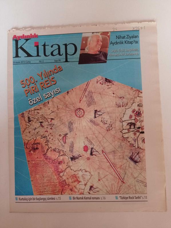 Aydınlık Kitap Gazetesi - 20 Aralık 2013 - Sayı 95 - 500. Yılında Piri Reis Özel Sayısı - Namık Kemal- Mike Hammer- Metafiziğin Kafalardan Silinmesine Katkı- Ayşe Erbulak- Nihat Ziyalan - Leyla Erbil Karşılıksız Ahmed Arif Karasevda - Kurtuluş İçin Bir Başlangıç Cümlesi - Bir Namık Kemal Romanı - Türkiye Rock Tarihî - Google Earth adlı eser Türkçe dilindedir.