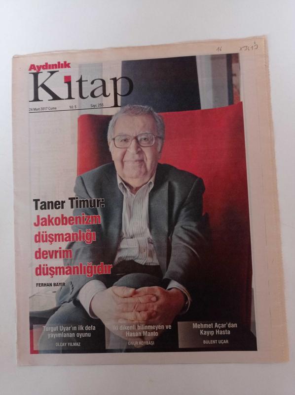 Aydınlık Kitap Gazetesi - 24 Mart 2017 - Sayı 255 - Taner Timur Fotoğrafı - Jakobenizm Düşmanlığı Devrim Düşmanlığıdır - Turgut Uyar'ın İlk Defa Yayımlanan Oyunu - Aydın Boysan- İki Dikenli Bilinmeyen Ve Hasan Manto - Kayıp Hasta adlı eser Türkçe dilindedir.