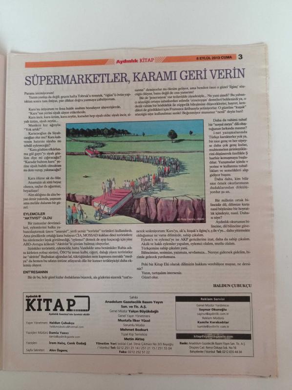 Aydınlık Kitap Gazetesi - 6 Eylül 2013 - Sayı 80 - Güney Afrika Şiiri Başkaldırının İzdüşümü - Süpermarketler Karamı Geri Verin - Orhan - Ben Bir Ağacım - Atatürk'ün Mimarının Anılarında İki Ankara - Genç Türkiye İnşa Edilirken adlı eser Türkçe dilindedir.