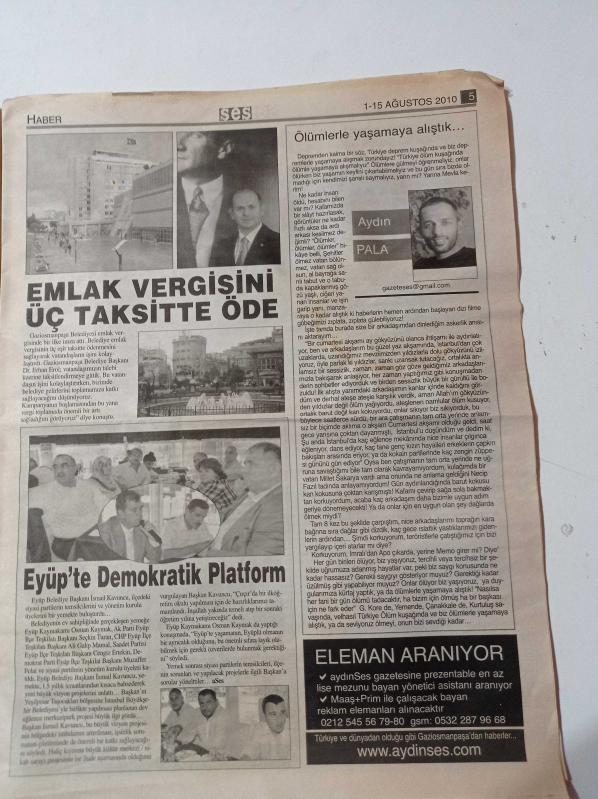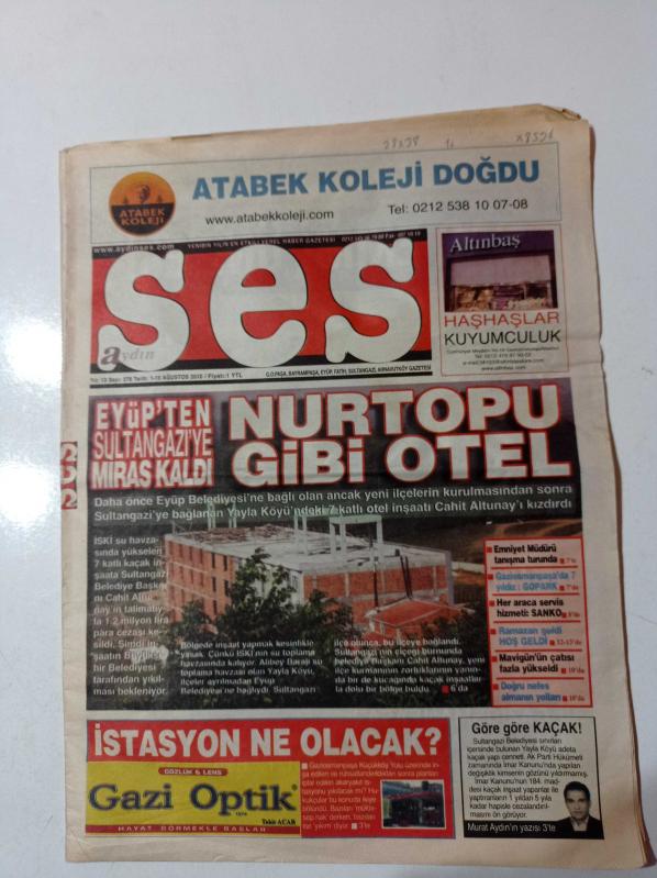 Aydınses Gazetesi - 1 15 Ağustos 2010 - Gaziosmanpaşa Bayrampaşa Eyüp Fatih Sultangazi Arnavutköy Gazetesi - Eyüp'ten Sultangazi'ye Miras Kaldı - Nurtopu Gibi Otel - Emniyet Müdür Tanışma Turunda - Ramazan Geldi Hoşgeldi- Her Araca Servis Hizmeti SANKO adlı eser Türkçe dilindedir.
