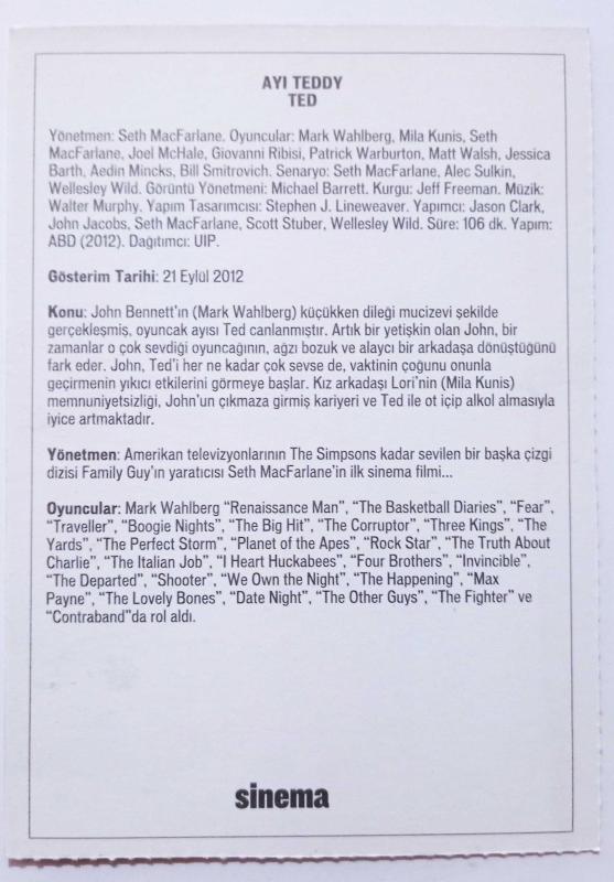 Ayı Teddy / Ted - Mark Wahlberg & Mila Munis ~ [ SİNEMA KARTI ] başlıklı ürün, Efemera, Müzik, Sinema > Sinema, Film, Dizi > Lobi Kart ve Koleksiyon Kartı kategorisi altında İkinci El olarak satılmaktadır.