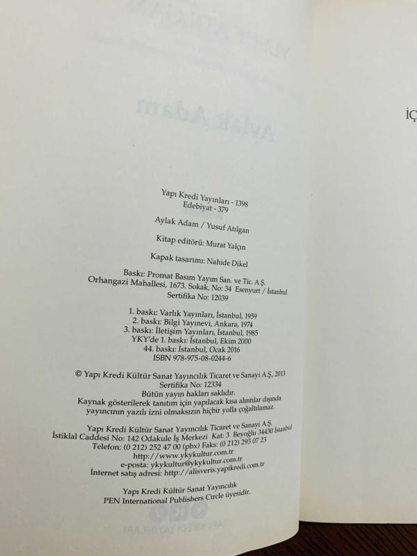 Aylak Adam, Yusuf Atılgan tarafından kaleme alınmıştır. Kitap 2016 yılında Yapı Kredi Yayınları tarafından yayınlanmıştır. 159 sayfadır. Aylak Adam adlı eser Türkçe dilindedir.