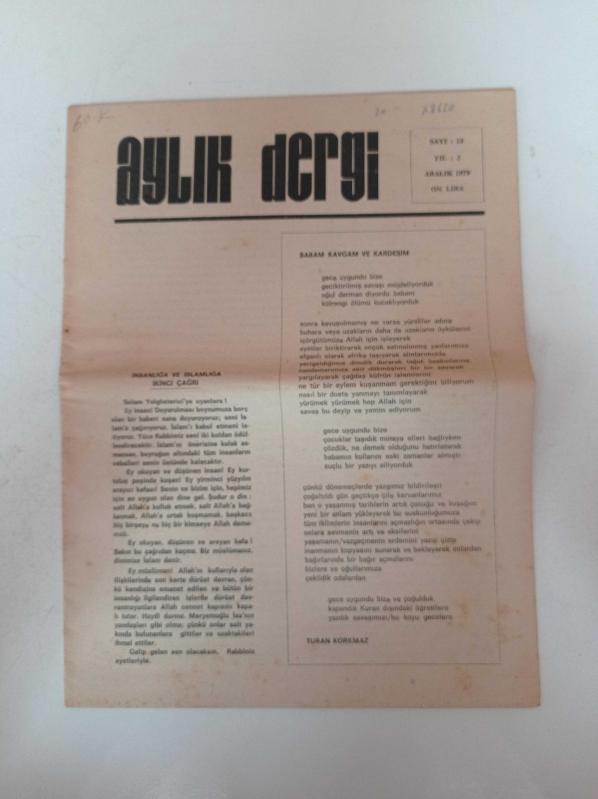Aylık Dergi Gazetesi - Aralık 1979 - Doktor Ali Şeriati'nin Yaşam Öyküsü - İnsanlığa Ve İslamlığa İkinci Çağrı - Turan Korkmaz Şiiri Babam Kavgam Ve Kardeşim - Özgürlüğün Kerbelası- Mevlüt Ceylan adlı eser Türkçe dilindedir.