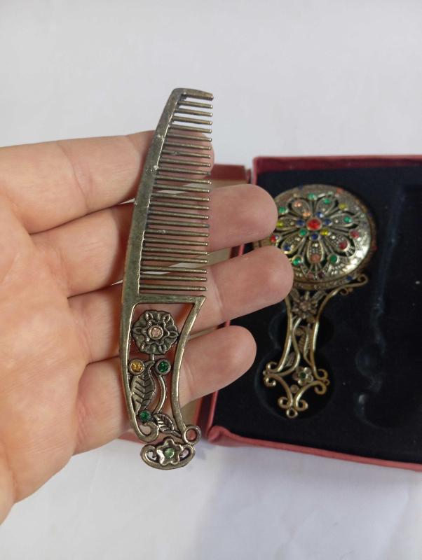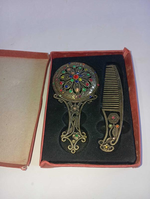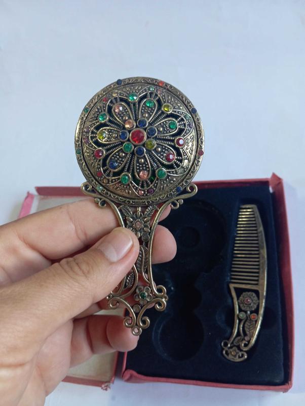 Ayna ve tarak taşlı işlemeli başlıklı antika/koleksiyon objesinin menşei belirtilmemiştir. Objenin ait olduğu dönem bilinmeketedir.