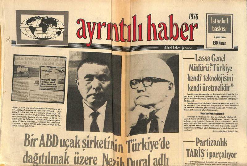 Ayrıntılı Haber Gazetesi 6 Şubat 1976 - Bir ABD Uçak Şirketinin Türkiye'de Dağıtılmak Üzere Nezih Dural Adlı Şahsa 13 Milyon Lira Gönderdiği Açıklandı GZ147280, en son 22 gün önce güncellenmiştir.