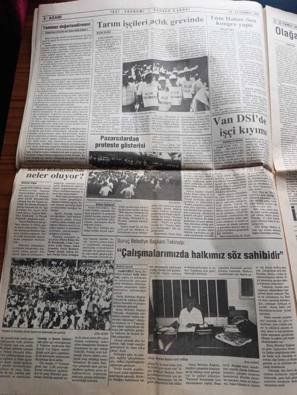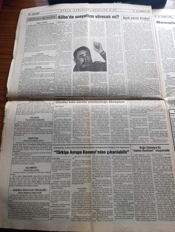 Azadi Gazetesi - Turkish Newspaper - 19 25 Mart 1992 - yürüdüler yemek boykotu yaptılar toplu vizeye çıktılar ve filli grev'e gittiler Fotoğrafı - HEP'i Meclisê çı dıkın nıvisi Ferhad Can - Avusturya Güney Kürdistan'ın Hewler kentindeki Avusturya Emine yapılan bombalı saldırıdan dolayı Irak'ı protesto etti - Şemdinli yine bombalandı - Didim Halk Kültür Derneği ile dayanışma gecesi - Kızıltepe peşmerge kampında olay - arkadaş kitabevine saldırı - iç Anadolu'da Kürtler yazan Ahmet Kızıl - Suruç belediye başkanı Salih Tekinalp - Sanıka Laze Pire û saye maran Zazaki - Said-i Nursi ve Kürt sorunu - Falxana Xalê Tosın - Çendo bextiyar karikatür - Helbestvaneki Cıwan İsmail Badi - HEP Diyarbakır İl Başkanı Hüseyin Turhallı - Newroz katliamı protestocuları yargılanıyor - Grup Ekin pavarotti'den de ikametgah ilmuhaber istiyor musunuz Fotoğrafı - insan hakları Derneği Genel sekreteri Akın Birdal Kürt sorunu en yaşamsal sorundur - evlilik hakkında kadınlar konuşuyor - Küba'da sosyalizm sürecek mi adlı eser, Kitap > Süreli Yayınlar > Gazeteler > Türkiye > Genel > Günlük kategorisinde İkinci El olarak satıştadır.