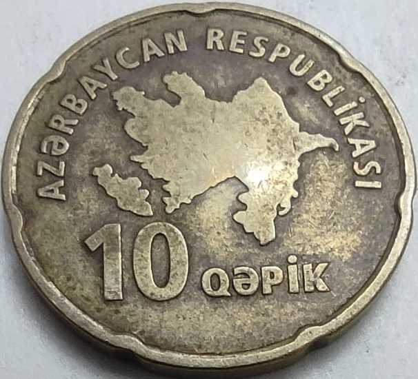 Azerbaycan'ın 2006 yılındaki para reformuyla tedavüle giren bu 10 Qəpik, nümismatik dünyasında "Askeri Tema" olarak bilinen serinin bir parçasıdır. Paranın ön yüzünde (obverse), Azerbaycan'ın tarihi ve modern savunma gücünü simgeleyen bir askeri miğfer ve onun önünde dik duran bir kılıç tasviri yer alır. Arka yüzünde (reverse) ise Azerbaycan haritası ve ülkenin Avrupa ile olan entegrasyonunu simgeleyen çizgisel grafikler arasında nominal değer bulunmaktadır. Avusturyalı ünlü tasarımcı Robert Kalina tarafından tasarlanan bu madeni para, bakır kaplı çelik yapısıyla hem dayanıklı hem de görsel olarak dikkat çekicidir. Üzerinde basım yılı ibaresi bulunmayan (ND - No Date) bu parça, Azerbaycan'ın bağımsızlık sonrası nümismatik kimliğini yansıtan en karakteristik modern paralardan biridir.