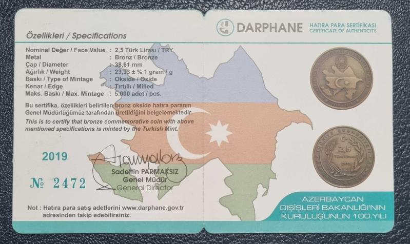Azerbaycan dışişleri bakanlığının kuruluşunun 100 yılı bronz hatıra parası, 2 ay önce satışa sunulmuştur.