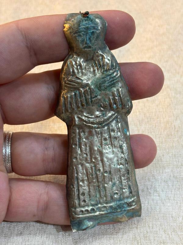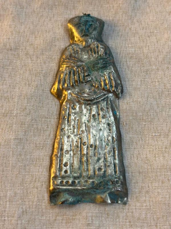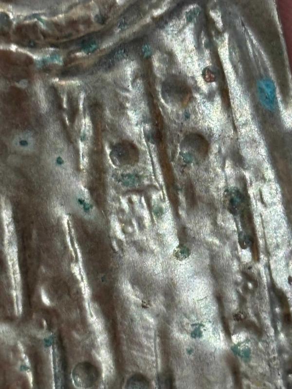 Aziz formunda gümüş damgalı adak. Rutubetten dolayı yeşermeler mevcuttur