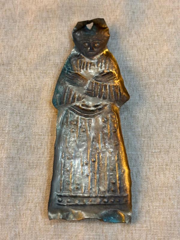 Aziz formunda adak başlıklı antika/koleksiyon objesi Avrupa menşe’lidir. 1920-1940 arası dönemine aittir.