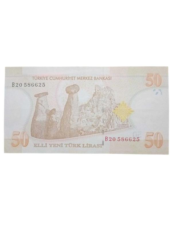 B 20 / 8. Emisyon 50 Yeni Türk Lirası Koleksiyon Cumhuriyet Dönemi Kağıt Para.