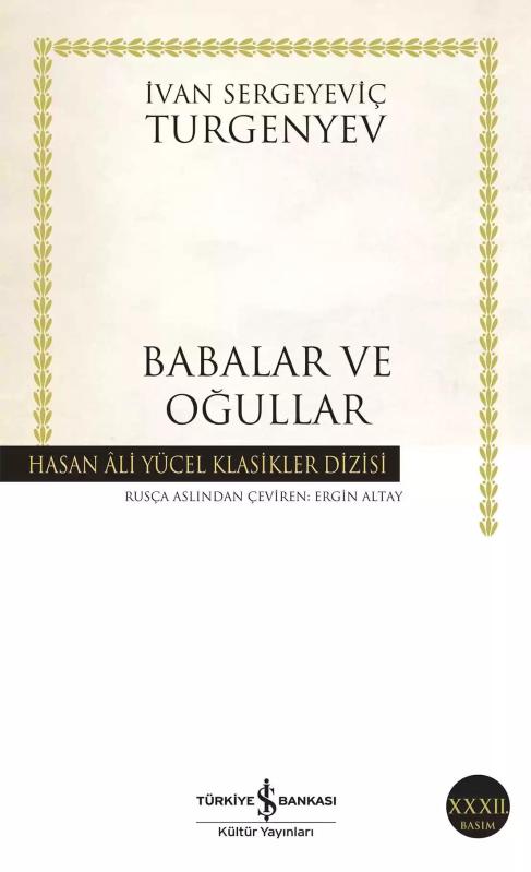 BABALAR VE OĞULLAR, İVAN SERGEYEVİÇ TURGENYEV tarafından kaleme alınmıştır. Kitap 2023 yılında TÜRKİYE İŞ BANKASI YAYINLARI tarafından [İSTANBUL] 9789944885454 ISBN kodu ile yayınlanmıştır. Bu baskının çevirisi ERGİN ALTAY tarafından yapılmıştır. 260 sayfadır. BABALAR VE OĞULLAR adlı eser Türkçe dilindedir.