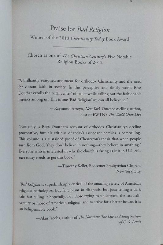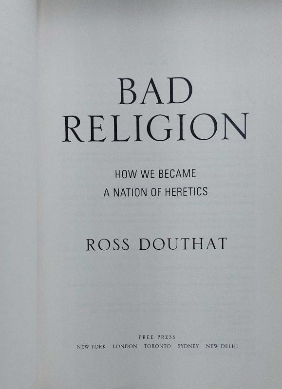 BAD RELİGİON: How We Became a Nation of Heretics ROSS DOUTHAT İNGİLİZCE FREE PRESS 2013 BASKI 337 SAYFA KİTAP KULLANILMAMIŞTIR.