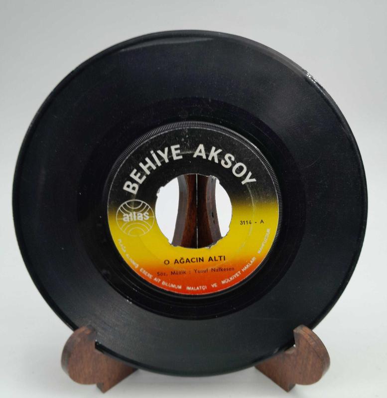 BAHİYE AKSOY O AĞACIN ALTI 45 LİK PLAK başlıklı antika/koleksiyon objesi Türkiye menşe’lidir. 1950-1999 arası dönemine aittir.