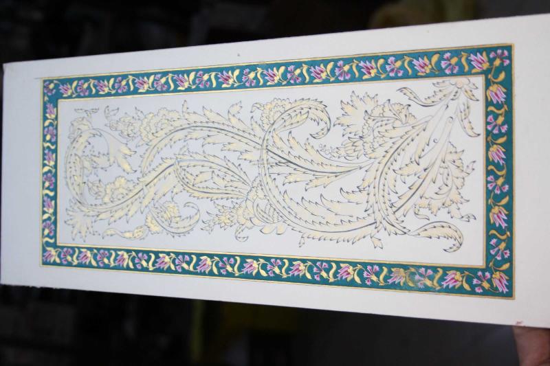 .BAKINIZ.TEZHİP SANATI EL YAPIMI ÇERÇEVELİK ESER (CAM ÖNÜ RAF ÜSTÜ başlıklı antika/koleksiyon objesinin menşei belirtilmemiştir. 2000 ve sonrası dönemine aittir.