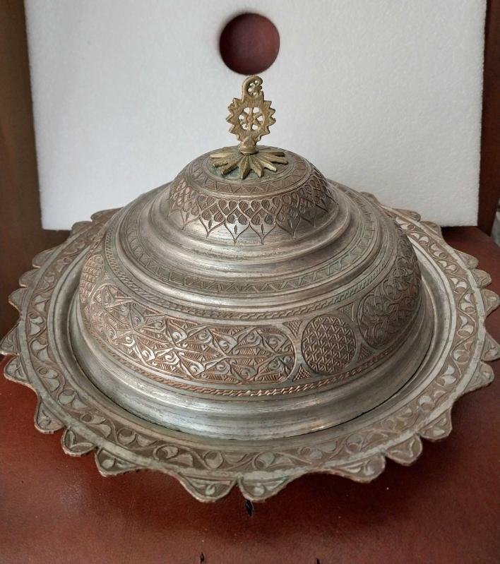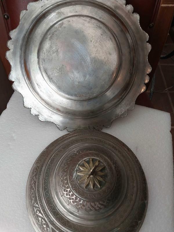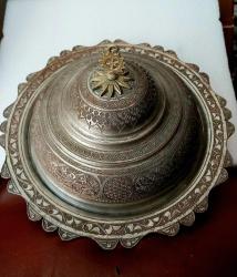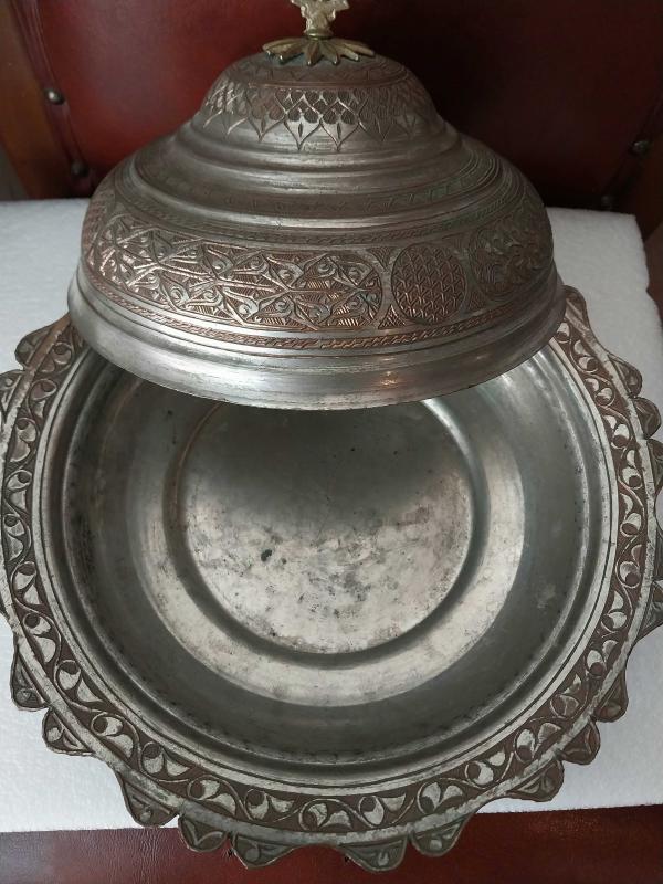 BAKIR TABAK, KOMPLE EL İŞÇİLİĞİ İLE SÜSLENMİŞ KAPAKLI PİLAV TABAĞI, MUHTEŞEM GÖRSELLİĞİ OLAN AĞIR , KOLEKSİYONLUK BİR ÜRÜNDÜR.. başlıklı antika/koleksiyon objesi Türkiye menşe’lidir. 1940 sonrası dönemine aittir.