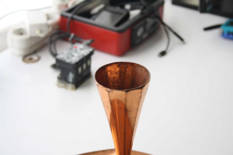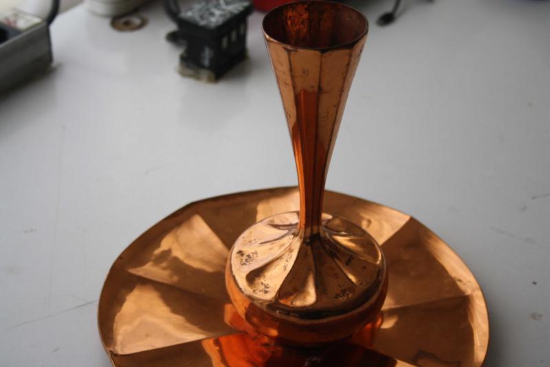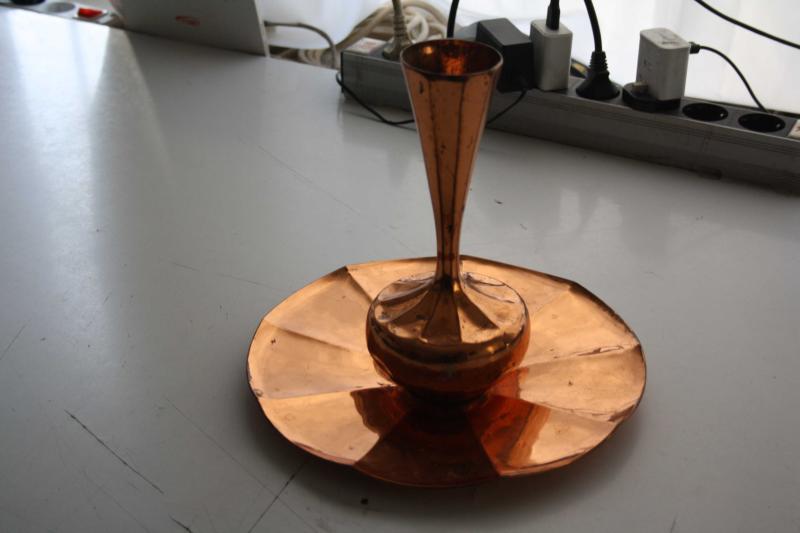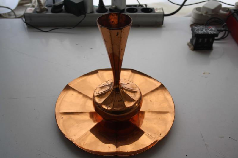 BAKIR VAZO TABAĞI İLE BERABER SÜPER ÜRÜN DETAYLAR RESIMLERDE (ALİ KOLİSİ başlıklı antika/koleksiyon objesi Türkiye menşe’lidir. 1960-1979 arası dönemine aittir.