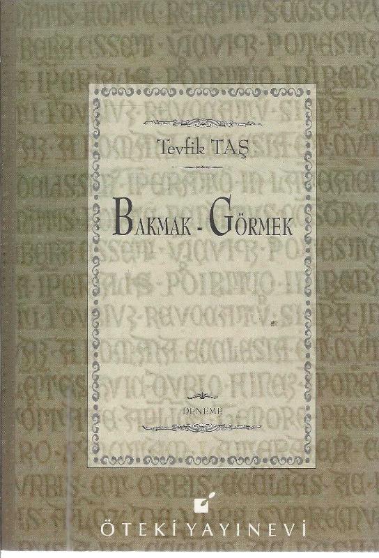 BAKMAK-GÖRMEK, TEVFİK TAŞ tarafından kaleme alınmıştır. Kitap 1998 yılında ÖTEKİ YAYINEVİ tarafından [ANKARA] yayınlanmıştır. 144 sayfadır. BAKMAK-GÖRMEK adlı eser Türkçe dilindedir.