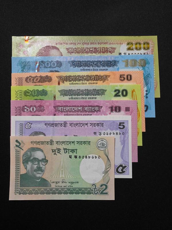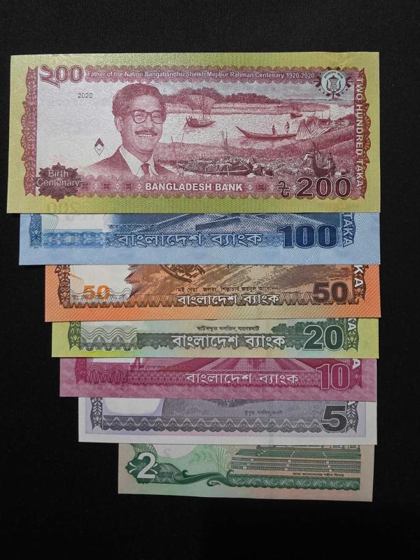 BANGLADEŞ 2-5-10-20-50-100-200 Taka 2018/2022 Toplam 7 Adet ÇİL, dün satışa sunulmuştur.