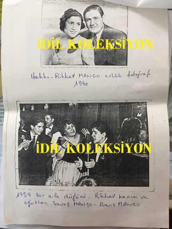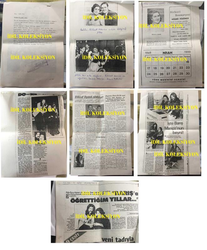 BARIŞ MANÇO'NUN ve ANNESİ RİKKAT UYANIK'IN ÇEŞİTLİ HABER ve BELGELERİNİN YER ALDIĞI 7 ADET TIPKI BASIM YAPRAK - 7.02.1992 TARİHLİ RİKKAT UYANIK'IN VEFAT HABERİNİN YAZILI OLDUĞU BASIN BÜLTENİ - HAKKI MANÇO ve RİKKAT UYANIK'IN EVLİLİK FOTOĞRAFLARI - 1959 TARİHLİ AİLE DÜĞÜNÜ FOTOĞRAFI, RİKKAT HANIM, BARIŞ MANÇO ve SAVAŞ MANÇO AYNI KAREDEYKKEN - TÜRK MUSIKİ DERNEĞİ RİKKAT UYANIK'IN YER ALDIĞI NİSAN 1949 TAKVİM YAPRAĞI, RİKKAT HANIM'IN RÖPORTAJINDAN 4 SAYFA (HAFTALIK RESİMLİ PERDE DERGİSİNİN 17.09.1949 TARİHLİ SAYISINDAN KOPYADIR), 10 ay önce satışa sunulmuştur.