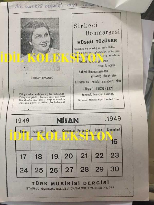 BARIŞ MANÇO'NUN ve ANNESİ RİKKAT UYANIK'IN ÇEŞİTLİ HABER ve BELGELERİNİN YER ALDIĞI 7 ADET TIPKI BASIM YAPRAK - 7.02.1992 TARİHLİ RİKKAT UYANIK'IN VEFAT HABERİNİN YAZILI OLDUĞU BASIN BÜLTENİ - HAKKI MANÇO ve RİKKAT UYANIK'IN EVLİLİK FOTOĞRAFLARI - 1959 TARİHLİ AİLE DÜĞÜNÜ FOTOĞRAFI, RİKKAT HANIM, BARIŞ MANÇO ve SAVAŞ MANÇO AYNI KAREDEYKKEN - TÜRK MUSIKİ DERNEĞİ RİKKAT UYANIK'IN YER ALDIĞI NİSAN 1949 TAKVİM YAPRAĞI, RİKKAT HANIM'IN RÖPORTAJINDAN 4 SAYFA (HAFTALIK RESİMLİ PERDE DERGİSİNİN 17.09.1949 TARİHLİ SAYISINDAN KOPYADIR) başlıklı ürün, Efemera, Müzik, Sinema > Fotoğraflar > Müzik kategorisi altında İkinci El olarak satılmaktadır.