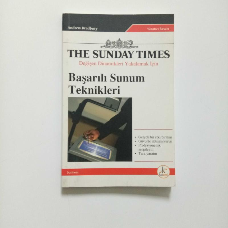 BAŞARILI SUNUM TEKNİKLERİ (DEĞİŞEN DİNAMİKLERİ YAKALAMAK İÇİN) (2.EL), ANDREW BRADBURY tarafından kaleme alınmıştır. Eser KADER AY editörlüğünde hazırlanmıştır. Kitap 2006 yılında KAİZEN YAYINCILIK tarafından [ İSTANBUL] 9944-969-18-4 ISBN kodu ile yayınlanmıştır. Satışta olan kitap, yayınevinin 1. baskısıdır. Bu baskının çevirisi H. ELÇİ tarafından yapılmıştır. 152 sayfadır. Sayfa bilgisi 1.HAMUR olarak belirtilmiştir. BAŞARILI SUNUM TEKNİKLERİ (DEĞİŞEN DİNAMİKLERİ YAKALAMAK İÇİN) (2.EL) adlı eser Türkçe dilindedir.