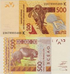 BATI AFRİKA PARA BİRLİĞİ 500 FRANK 2023. K HARFİ= SENEGAL. CFA FRANGI. ÇİL KONDİSYON