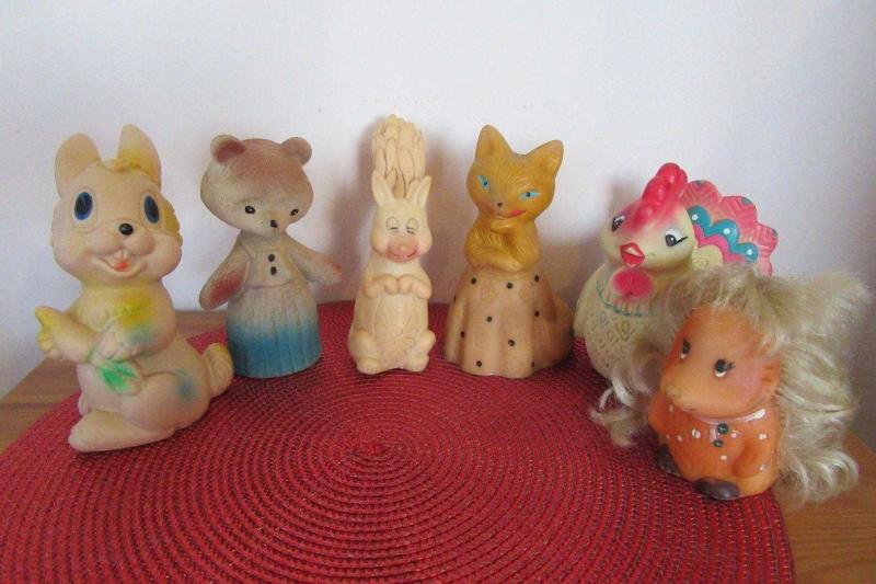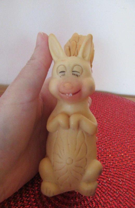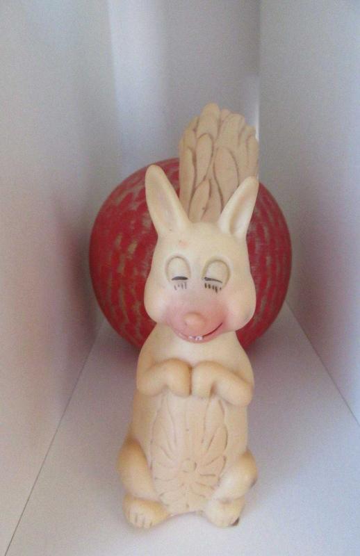 Batı Almanya 1960'lardan çok sevimli kauçuk (lastik) sincap oyuncak (West Germany rubber squirrel toy). Tabanında "Made in W. Germany" yazısı var. Çok iyi şekilde korunmuş, hiçbir kırılma veya yırtılmaya sahip değil. 3. fotoda dekoratif amaçlı yer alan objeler ürüne dahil değildir. 7. ve 8. fotolarda ürün değişik açılardan toplu halde sunulmuştur. ****** Fotoğrafta görülen ürün gönderilecektir ******