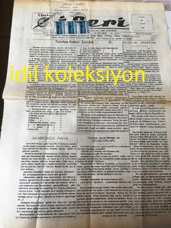 BATI TRAKYA , YUNANİSTAN İLERİ GAZETESİ YEREL TAŞRA BASINI - --25 Kasım 1983 --Yanıtsız Kalan Sorular- Akarpon 'da maya---Yoksa müşterek mi çalışıyorlar ?--Olaylar Görüşler--Yalanlıyoruz--Almanya da ki çalışmalar--Dr .Hüseyin M. Bekir-- Yıpranma, sararmalar, kupon kesiği ve yırtılmalar zamana bağlı olarak görülebilir.