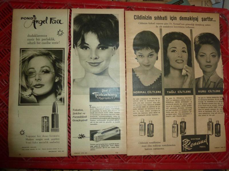 BAYAN KUAFÖR GÜZELLİK CİLT BAKIMI MAKYAJ MALZEMELERİ REKLAMLARI 1960-1965 YILLARI DERGİLERDEN ÇIKMA 32 ADET, en son 1 yıl önce güncellenmiştir.