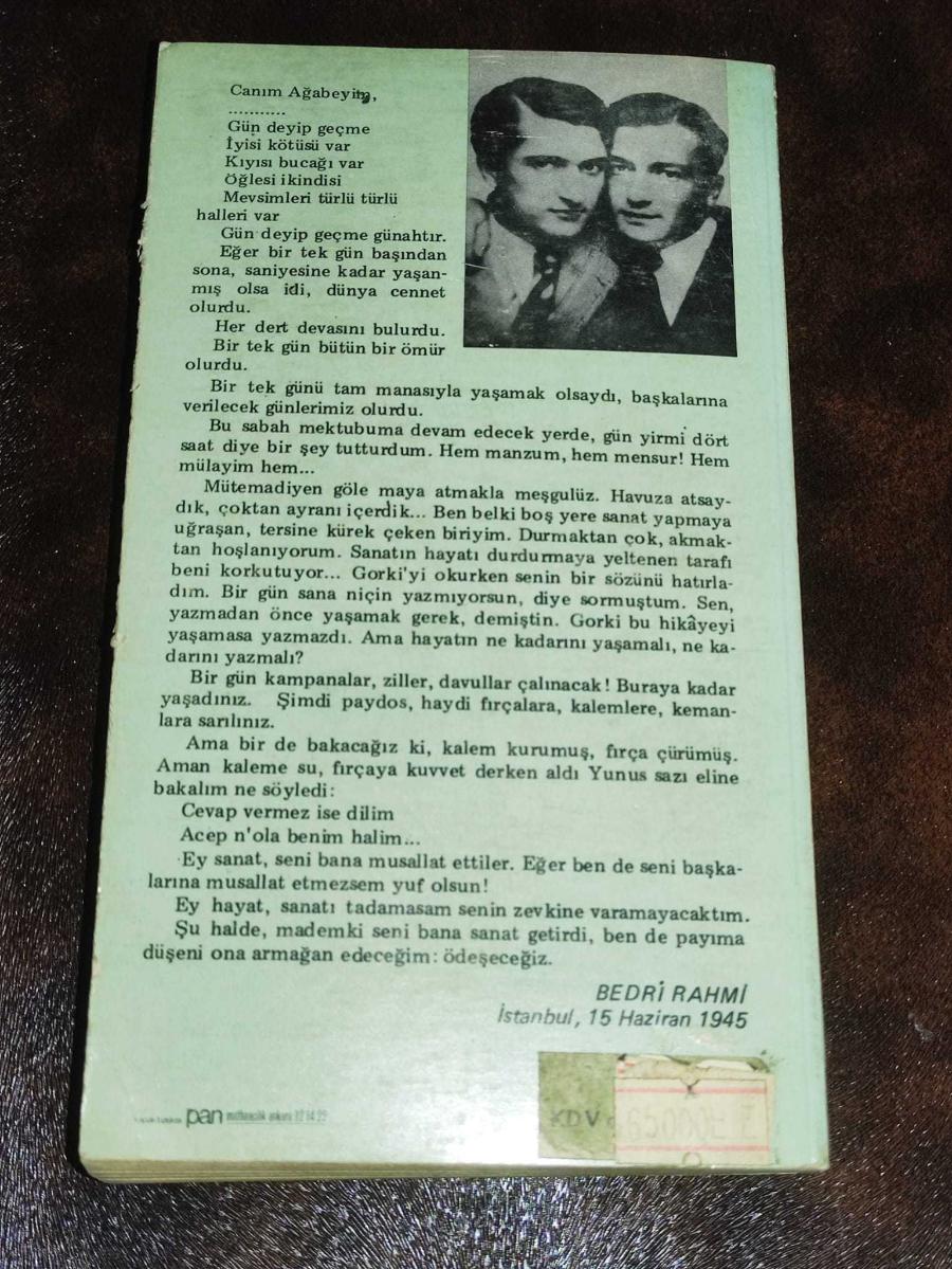 BEDRİ RAHMİ EYUPOĞLU **KARDEŞ MEKTUPLARI**BİLGİ YAYINEVİ**1.BASIM**1985, BEDRİ RAHMİ EYUPOĞLU tarafından kaleme alınmıştır. Eser MEHMET HAMDİ EYÜPOĞLU editörlüğünde hazırlanmıştır. Kitap 1985 yılında BİLGİ tarafından [ANKARA] yayınlanmıştır. 361 sayfadır. BEDRİ RAHMİ EYUPOĞLU **KARDEŞ MEKTUPLARI**BİLGİ YAYINEVİ**1.BASIM**1985 adlı eser Türkçe dilindedir.