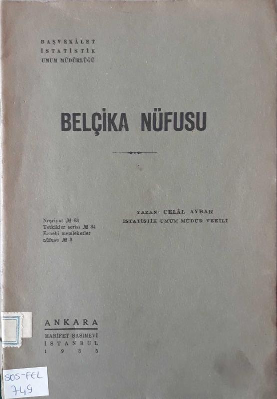 BELÇİKA NÜFUSU, CELAL AYBAR tarafından kaleme alınmıştır. Kitap 1935 yılında MARİFET BASIMEVİ tarafından yayınlanmıştır. 30 sayfadır. BELÇİKA NÜFUSU adlı eser Türkçe dilindedir.