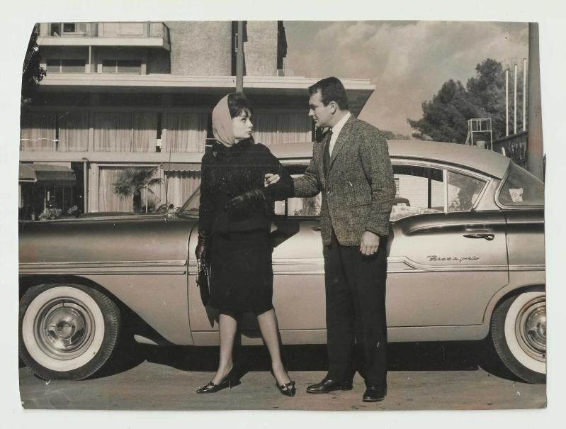 ** BELGİN DORUK & ORHAN GÜNŞİRAY VE ESKİ OTOMOBİL DİVAN OTELİ ÖNÜNDE BÜYÜK BOY FOTOĞRAF ** 23.3 x 17.7 cm.ebadında,arkasında yazısı olmayan,oldukça temiz durumda,filmden alınma orijinal fotoğraftır...