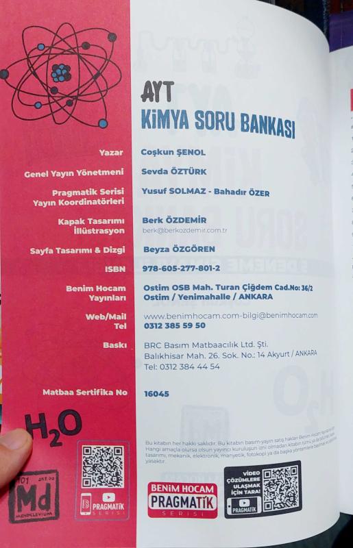 BENİM HOCAM YAYINLARI AYT KİMYA SORU BANKASI 5 Deneme Sınavı İlaveli Baskı: 2021 Sayfa Sayısı: 224 . KULLANILMAMIŞTIR
