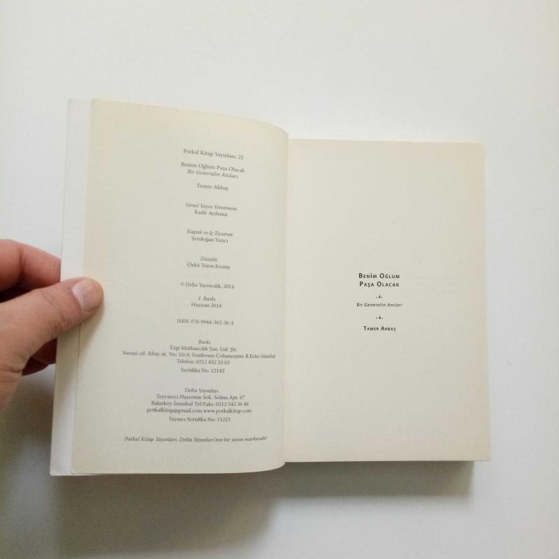 BENİM OĞLUM PAŞA OLACAK (BİR GENERALİN ANILARI) (2. EL), TAMER AKBAŞ tarafından kaleme alınmıştır. Eser KADİR AYDEMİR editörlüğünde hazırlanmıştır. Kitap 2014 yılında PORTAL KİTAP tarafından [ İSTANBUL] 978-605-4841-36-3 ISBN kodu ile yayınlanmıştır. Satışta olan kitap, yayınevinin 1. baskısıdır. 312 sayfadır. Sayfa bilgisi 2. HAMUR olarak belirtilmiştir. BENİM OĞLUM PAŞA OLACAK (BİR GENERALİN ANILARI) (2. EL) adlı eser Türkçe dilindedir.