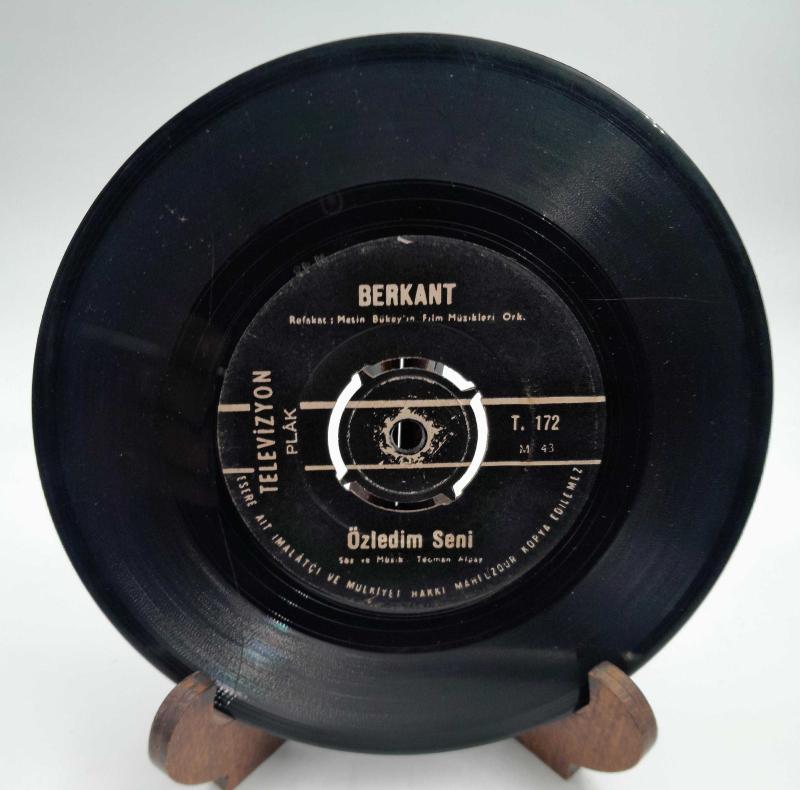 BERKANT ÖZLEDİM SENİ 45 LİK PLAK başlıklı antika/koleksiyon objesi Türkiye menşe’lidir. 1950-1999 arası dönemine aittir.