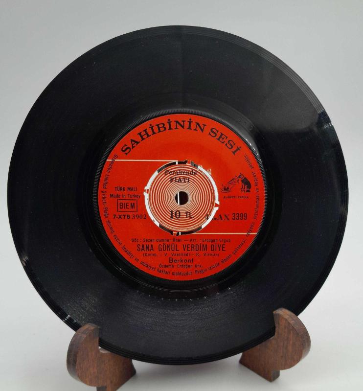 BERKANT SANA GÖNÜL VERDİM 45 LİK PLAK başlıklı antika/koleksiyon objesi Türkiye menşe’lidir. 1950-1999 arası dönemine aittir.