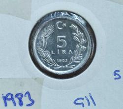 BEŞ (5) LİRA 1983 ÇİL+++